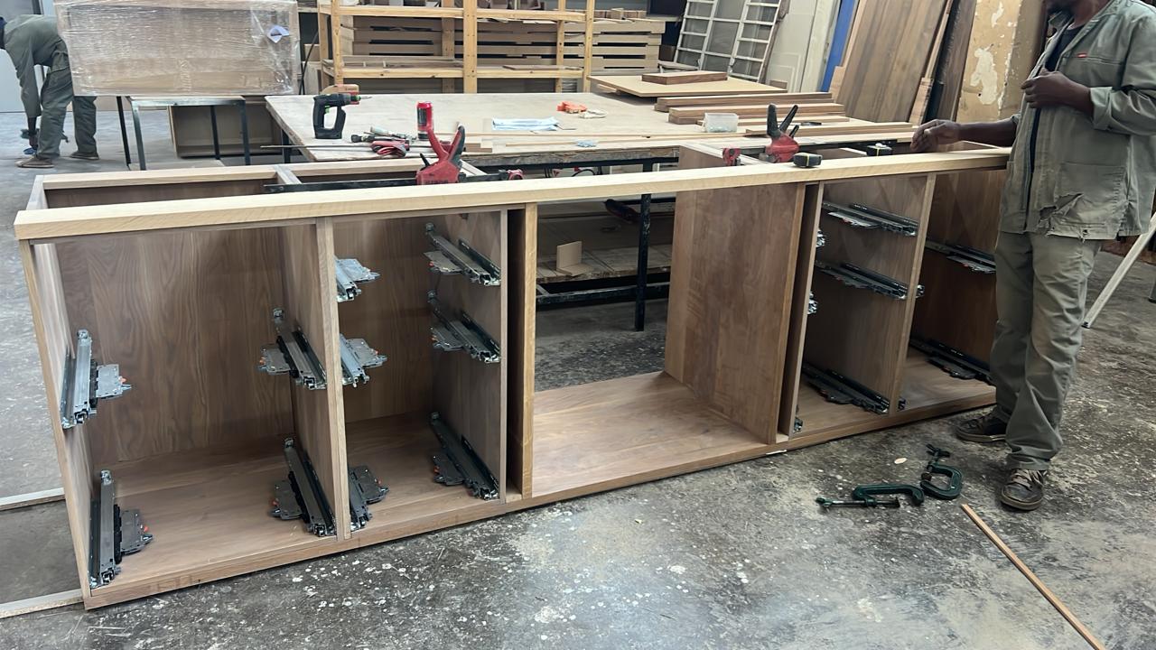 Our in-house manufacturing team ensures precision craftsmanship using top-grade materials and cutting-edge technology. Once complete, our experienced installers bring the design to life with professional on-site fitting. We manage the process from start to finish, ensuring your cupboards are delivered and installed on time, with impeccable quality.